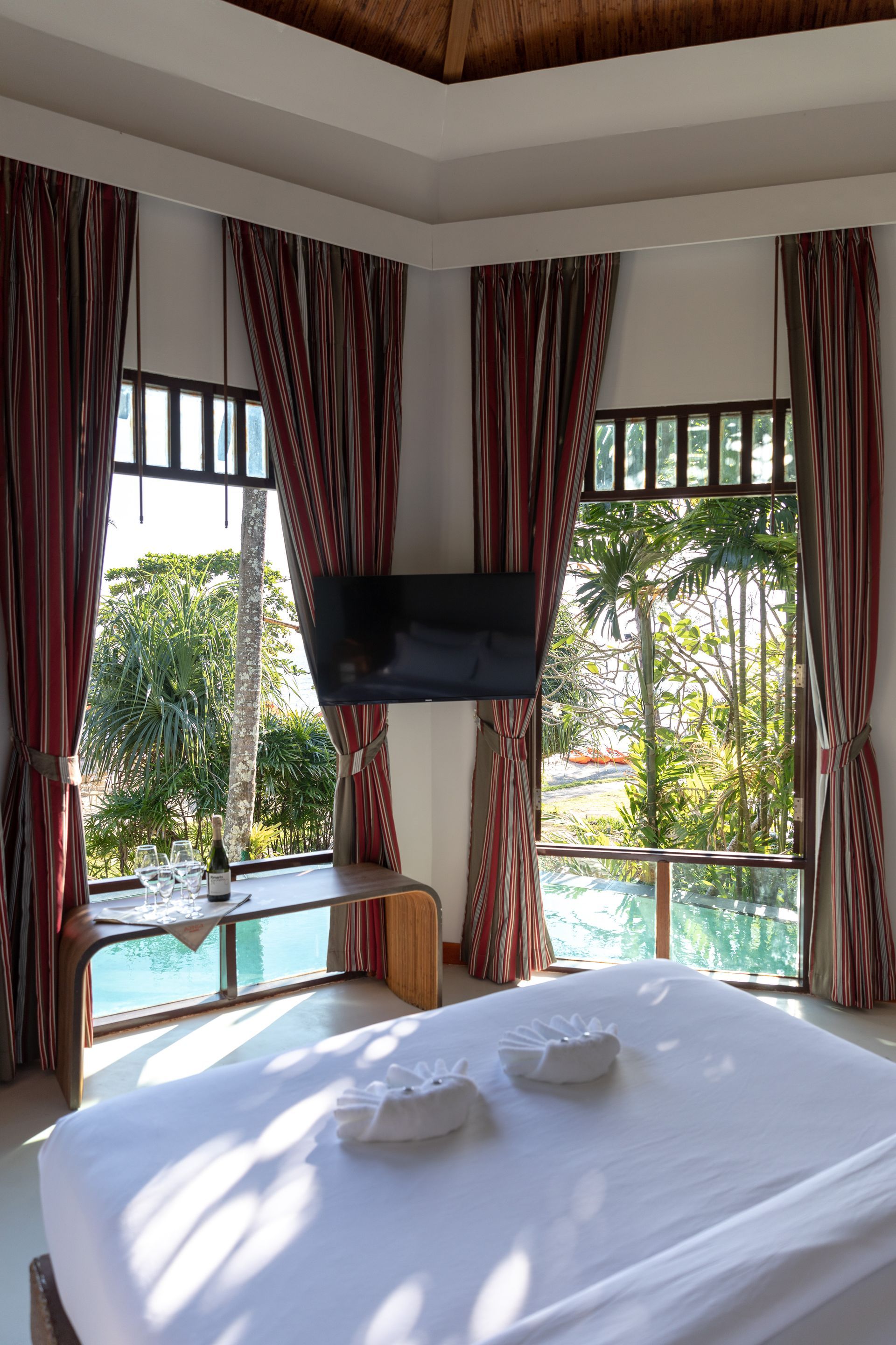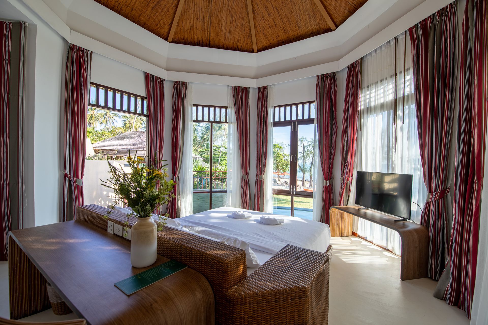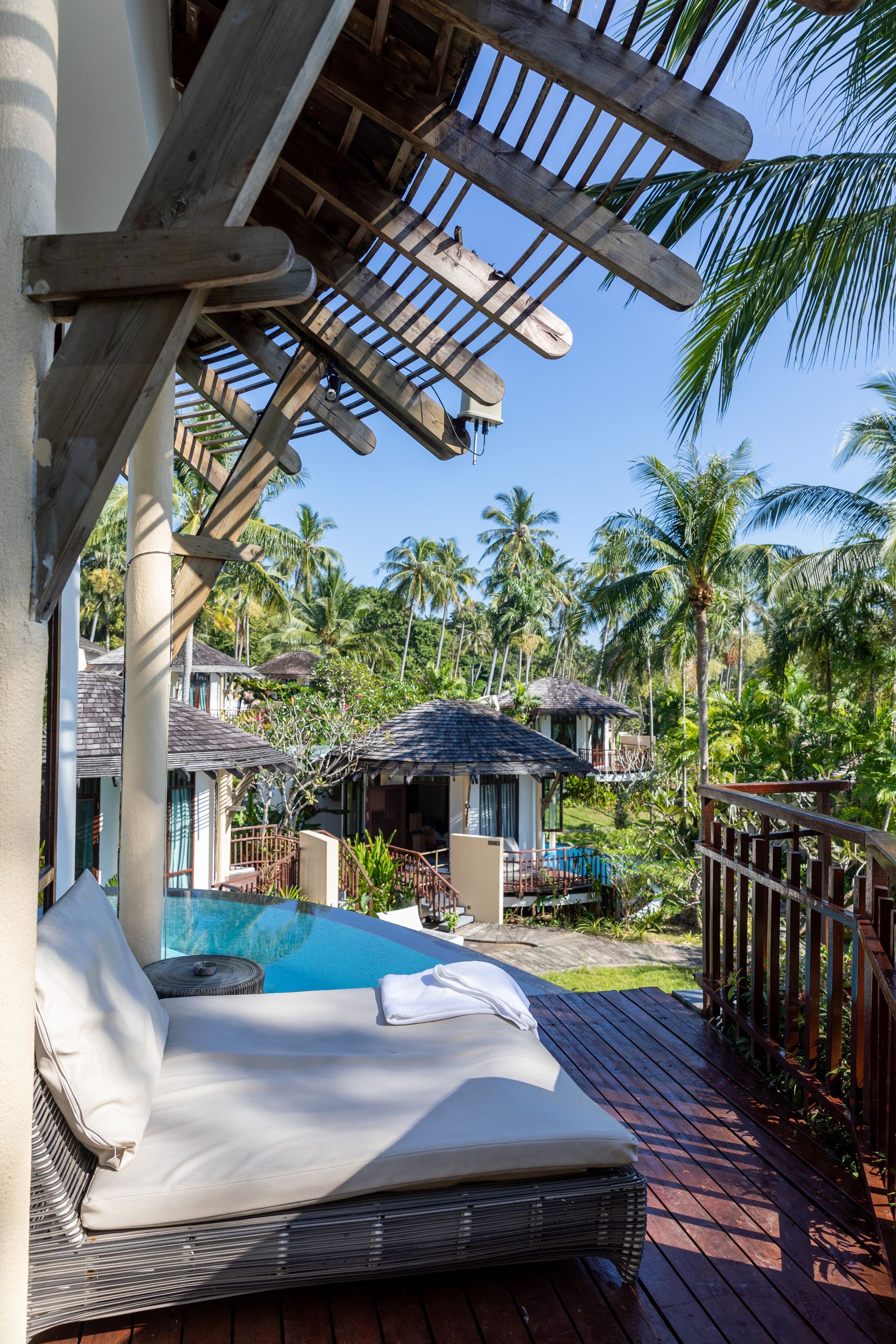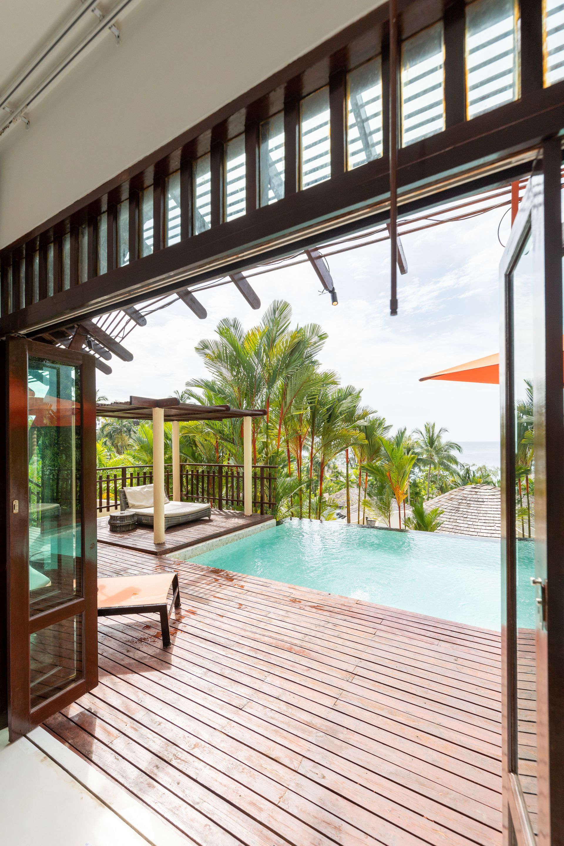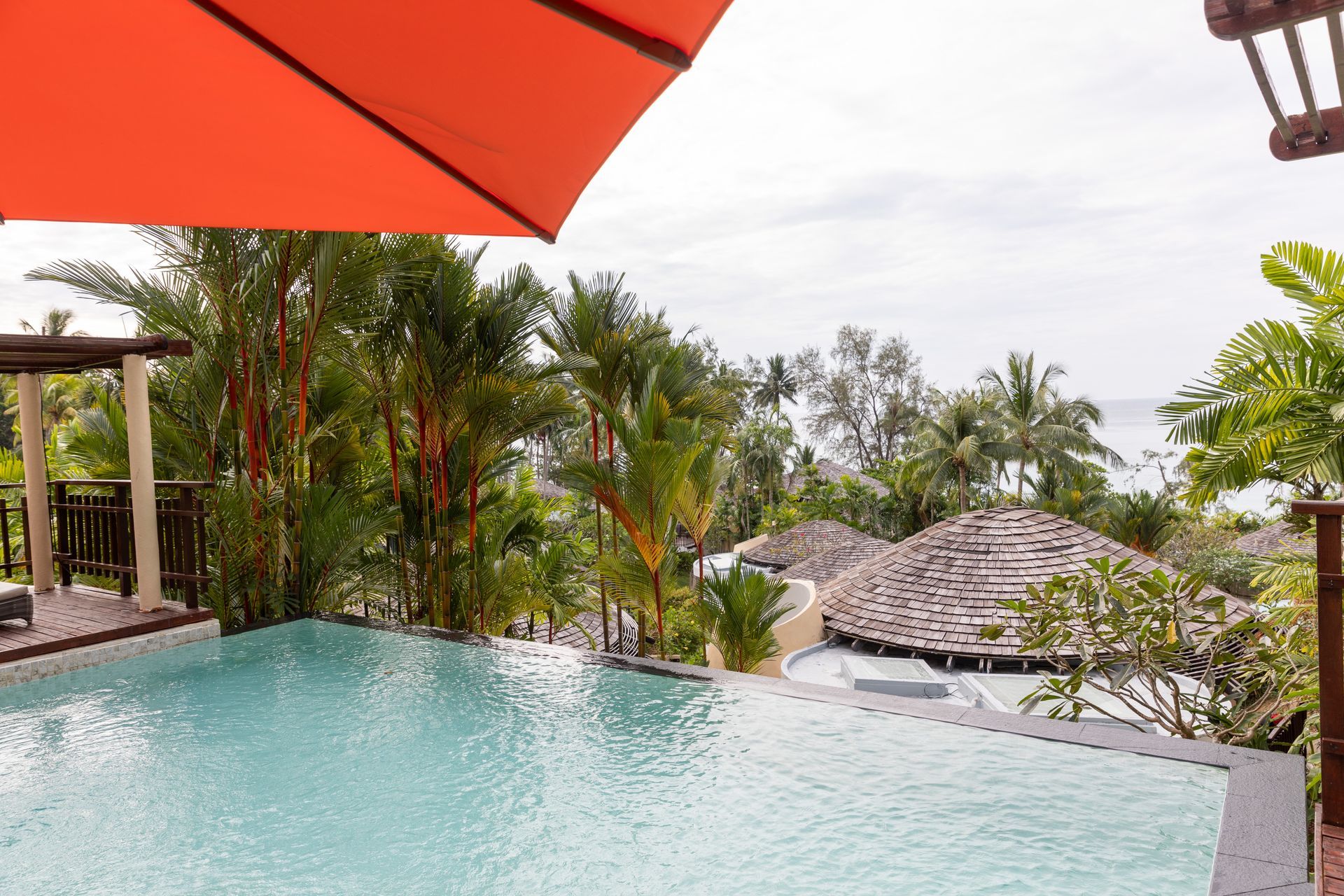 Seaview Pool Villas are situated throughout the lush gardens of the resort grounds (partial Seaview) and offer open air-bathtubs, his and her sinks, Rain showers, bathroom amenities by Charcoalogy, Smart TV 43”, high ceilings, and an outdoor sun deck. Vibrant color schemes combined with natural products provide a fresh and light atmosphere to help you unwind, not to mention the added luxury of a private pool.