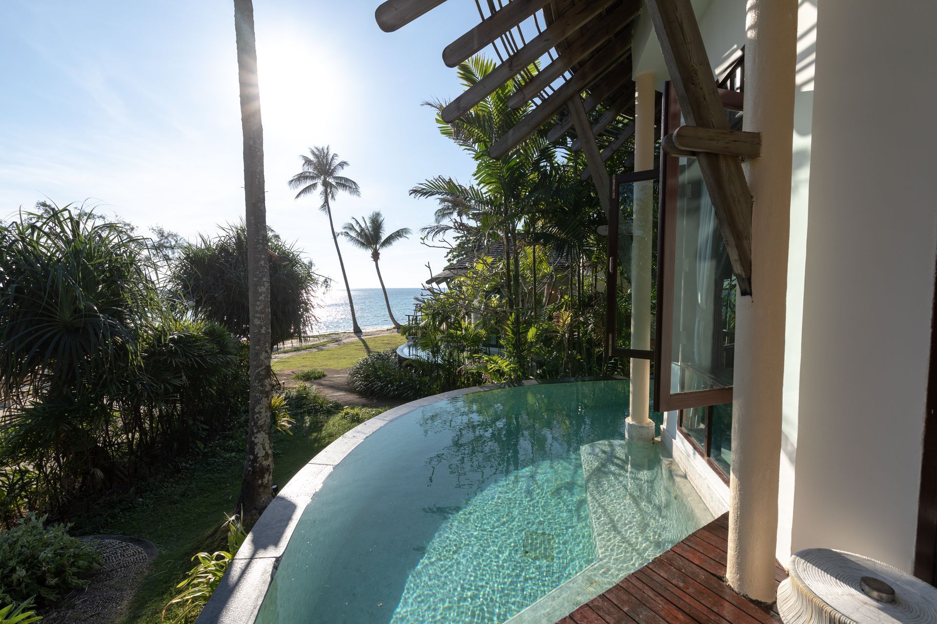 Beachfront Pool Villas are situated directly in front of the beach and are designed to provide a breathtaking view of the sea. Open air-bathtubs, his and her sinks, rain showers, bathroom amenities by Charcoalogy, Smart TV 43”, high ceilings, and an outdoor sun deck are just some of the features you will enjoy, not to mention the added luxury of a private pool and the beach just steps away.