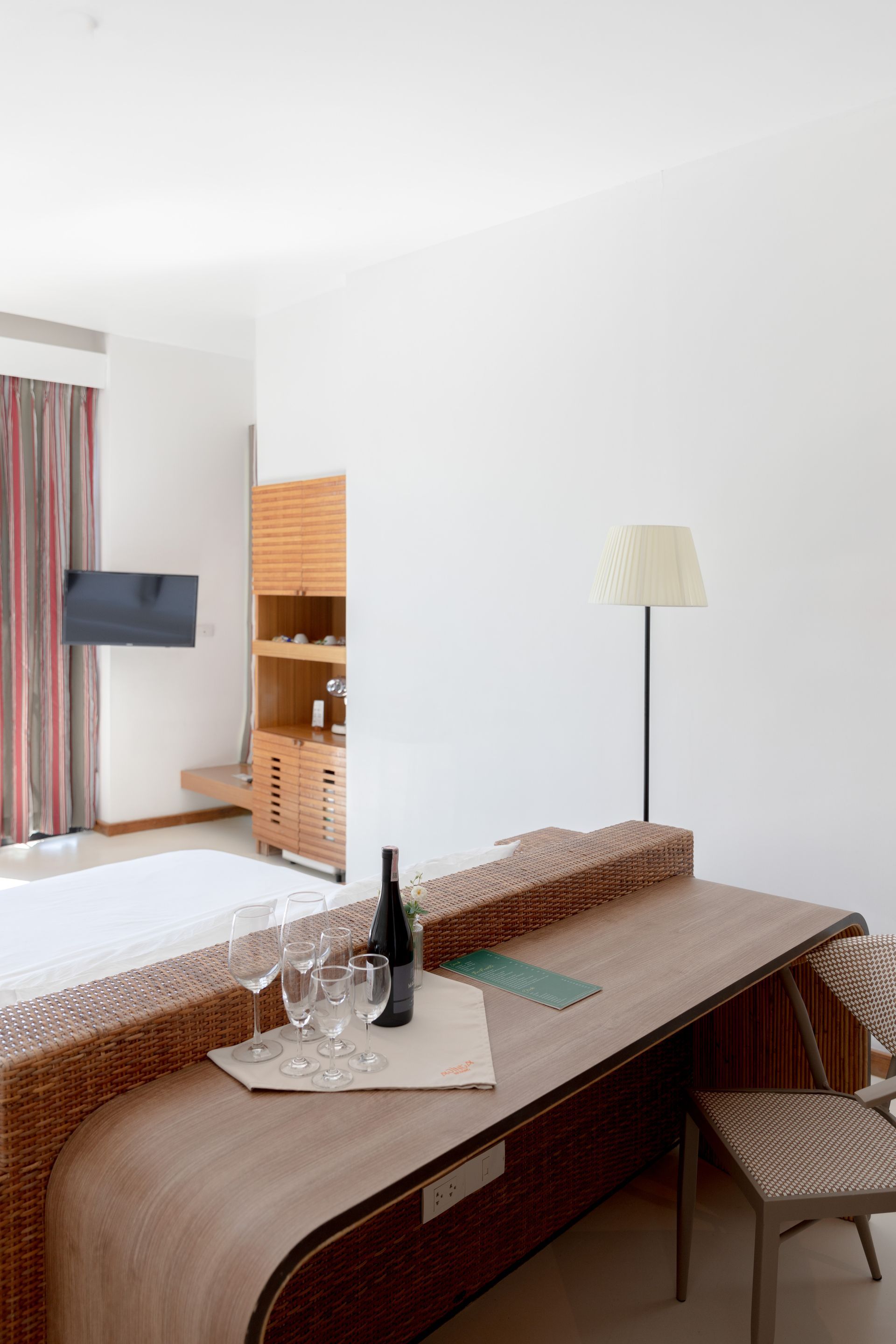 Grand Deluxe Jacuzzi Ocean View Rooms are located in the main building, situated on the top of the hill on which Ajinta Resort sits. This location gives the rooms a panoramic view of the resort grounds and the sea which you can enjoy while soaking in your two-person Jacuzzi on the balcony. Rooms are decorated in a sophisticated yet casual tropical décor with modern amenities and added touches for comfort.