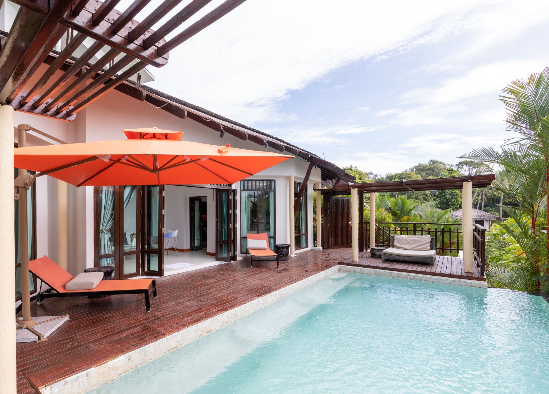 The Presidential Pool Villa Two Bedroom is the ultimate luxury retreat for you and your friends or family. Enjoy stunning views from the top of the resort, a spacious floor plan with two separate bedrooms and a living area, as well as a large private swimming pool where you can relax and take in the tropical scenery.